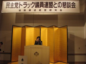 KUMIKO HAYASHI OFFICIAL ≡ プロフィール 私の志 メディア これまでの活動 Blog 講演のご依頼 お問合せ トラック協会・道路輸送経営研究会との懇談会① 2010.06.02 全国怒濤府県トラック協会・道路輸送経営研究会の役員・幹部の方々と、民主党トラック議員連盟の懇談会がありました。 (2010.5.27) 前のページに戻る