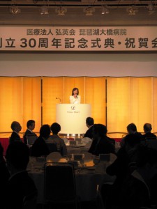 KUMIKO HAYASHI OFFICIAL ≡ プロフィール 私の志 メディア これまでの活動 Blog 講演のご依頼 お問合せ 祝賀会 2010.09.11 「医療法人弘英会 琵琶湖大橋病院 創立30周年記念式典・祝賀会」にてご挨拶をさせていただきました。(2010.9.11) 前のページに戻る