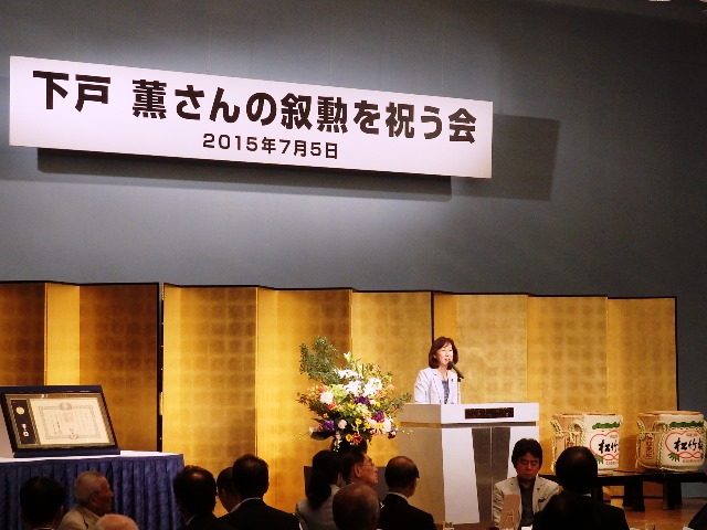 私の後援会の会長でもある下戸薫さんの叙勲を祝う会に出席させていただき、お祝いの挨拶をさせていただきました。(2015.7.5)