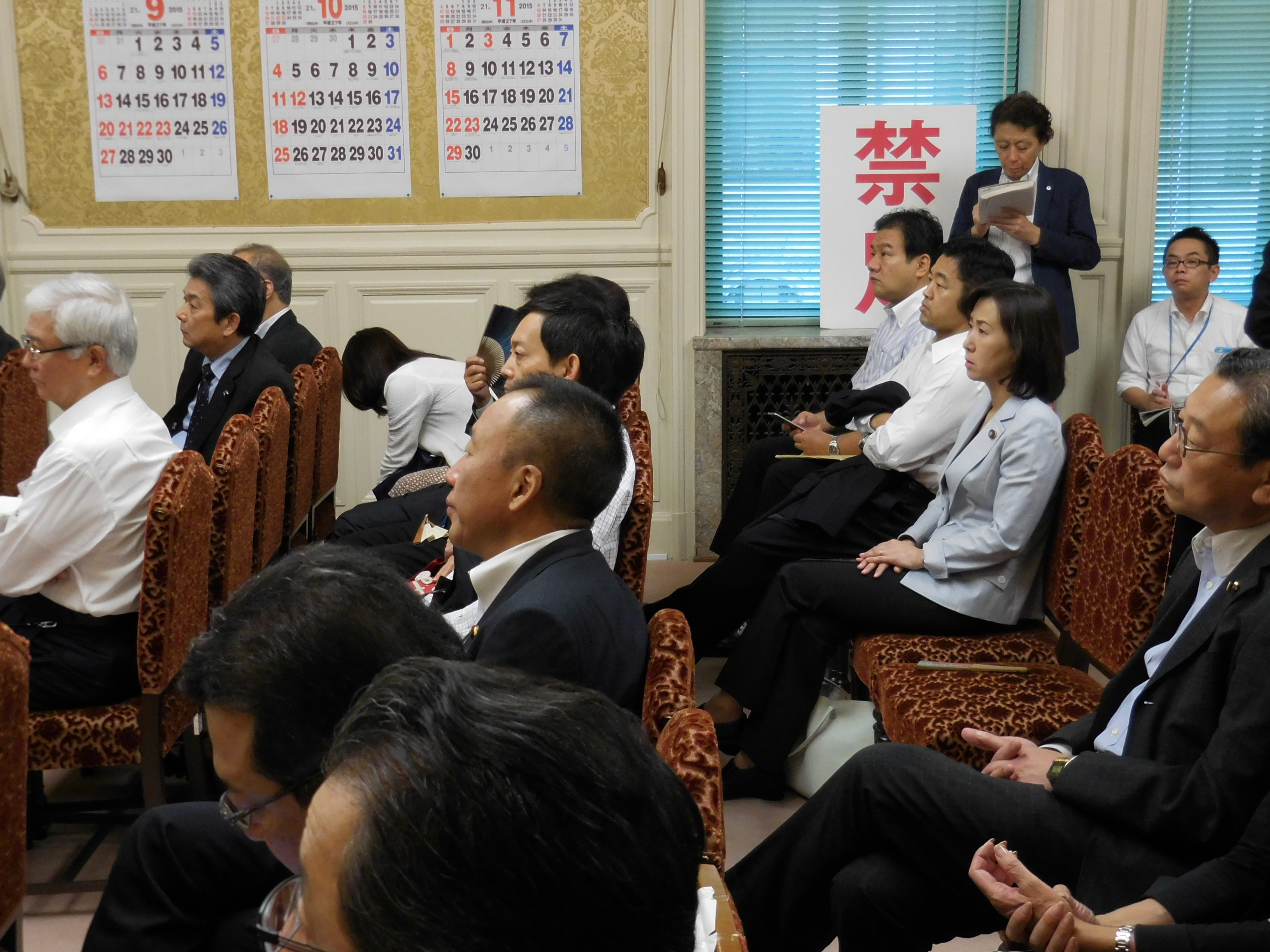 議員総会に出席し、引続き安全保障関連法案廃案に向けて、一致結束していくことを確認致しました。(2015.9.17)